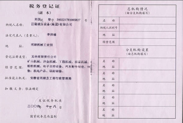 國稅登記證(副)